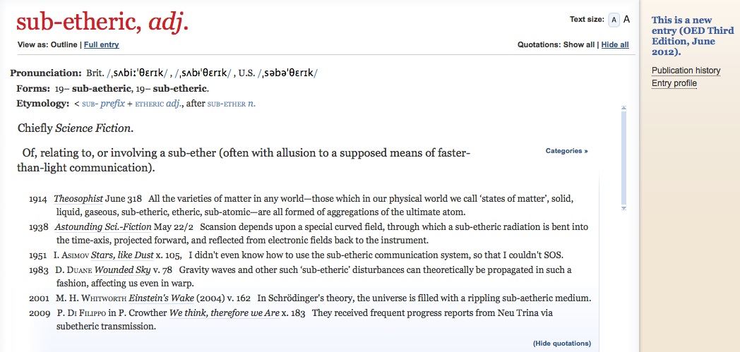 Around 2002, when I was writing my Authors in Context book on Virginia Woolf (2005), identifying new words and pre-dating existing ones became a minor obsession. By then I’d acquired the new Shorter OED (2 vols), which probably encouraged the obsession, and my University had access to the full online OED. The Authors in Context series editor Patricia Ingham had begun as a medieval philologist (she was one of the editors of the Chaucer Glosssary), and had carried a philologist’s precise focus on language and signs through to her work on Victorian fiction. She had been my tutor for Victorian literature in my first term at Oxford, and for the History of the Language paper in my final year, so I knew something of her approach, and I’d seen her plan for her Thomas Hardy (Authors in Context) book before it came out.  Woolf was significantly shy of using modish terms, and, unlike Hardy, not a great delver in dictionaries, but writing the book sensitised me to the problem of how one might tell literary and cultural history through the medium of the semantic change; behind the idea were Raymond Williams (especially Keywords) and Mikhail Bakhtin (for the idea of a contested term).  I’m not sure how much of this got into the book — Woolf wouldn’t let me — but it also sensitised me to everything else I was reading, and every time I found an unfamiliar word in the newspaper, or a word in historical reading that I thought might have been a new coinage, I reached first for the OED online to see what information they had, and then for their submission form.